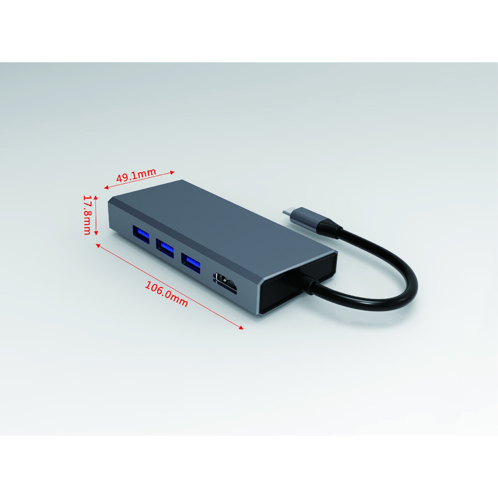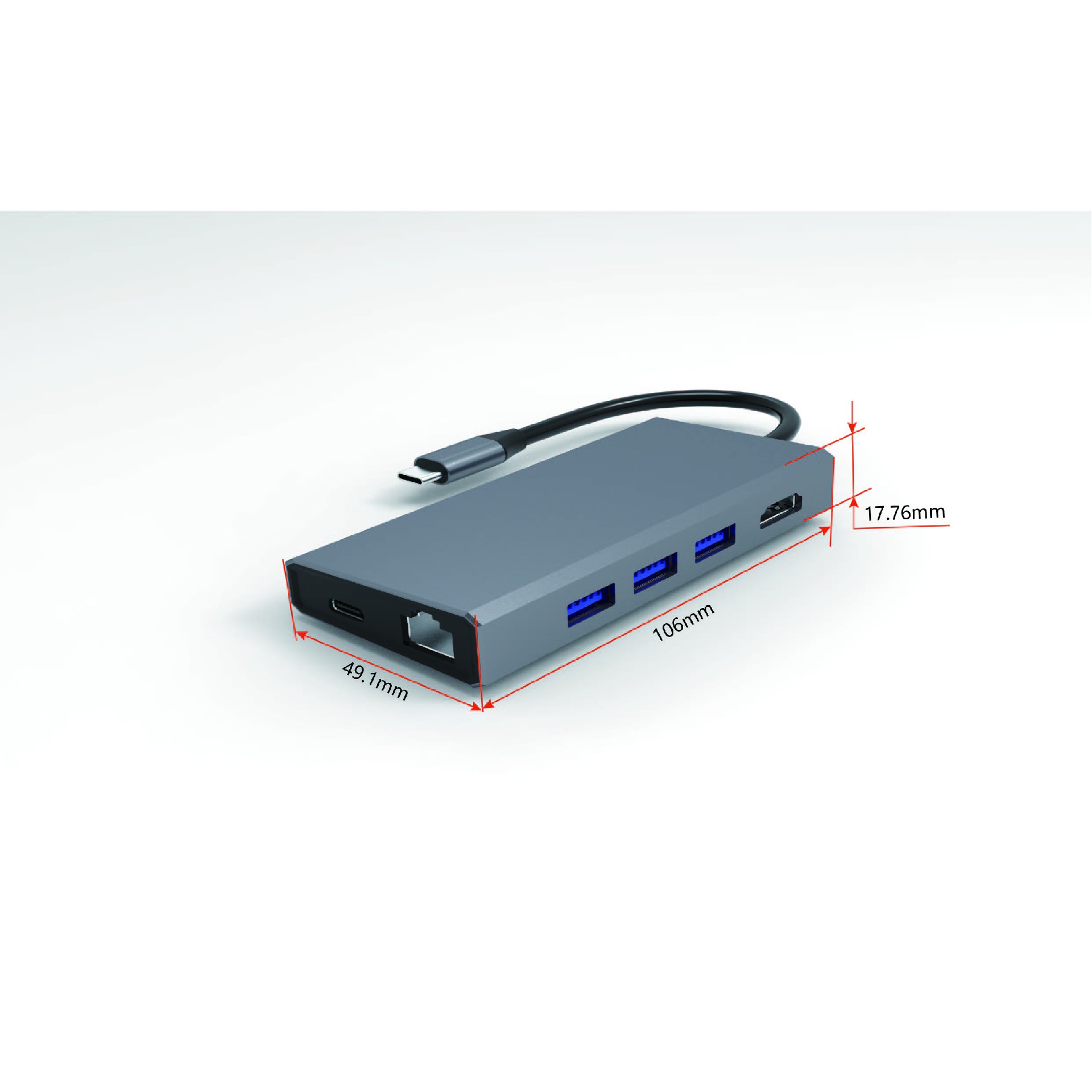 TYPE-C TO HDMI+PD+USB3.0 *3+RJ45+SD+TF